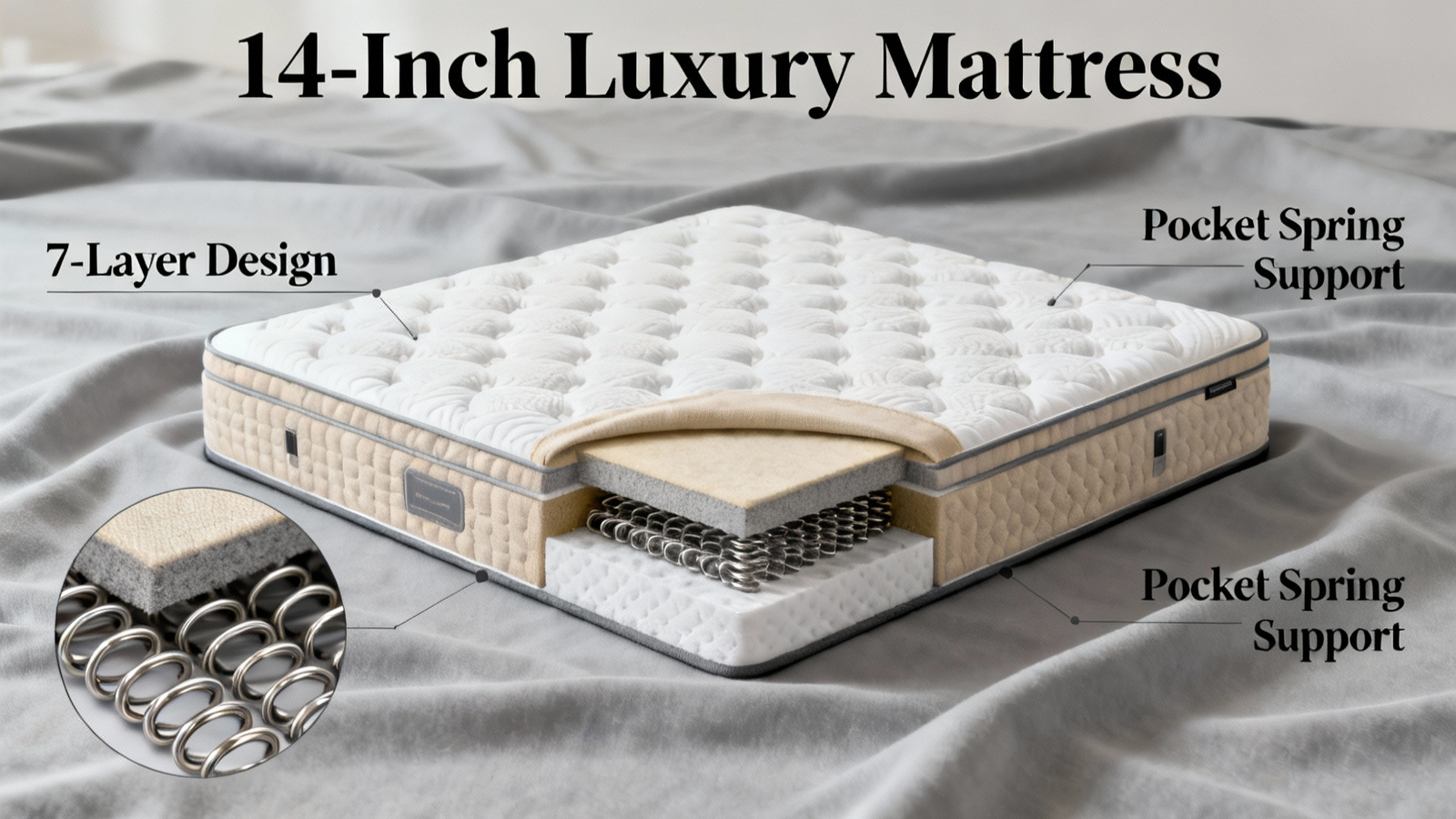 14-Inch Luxury Mattress: 7-Layer Design & Pocket Spring Support