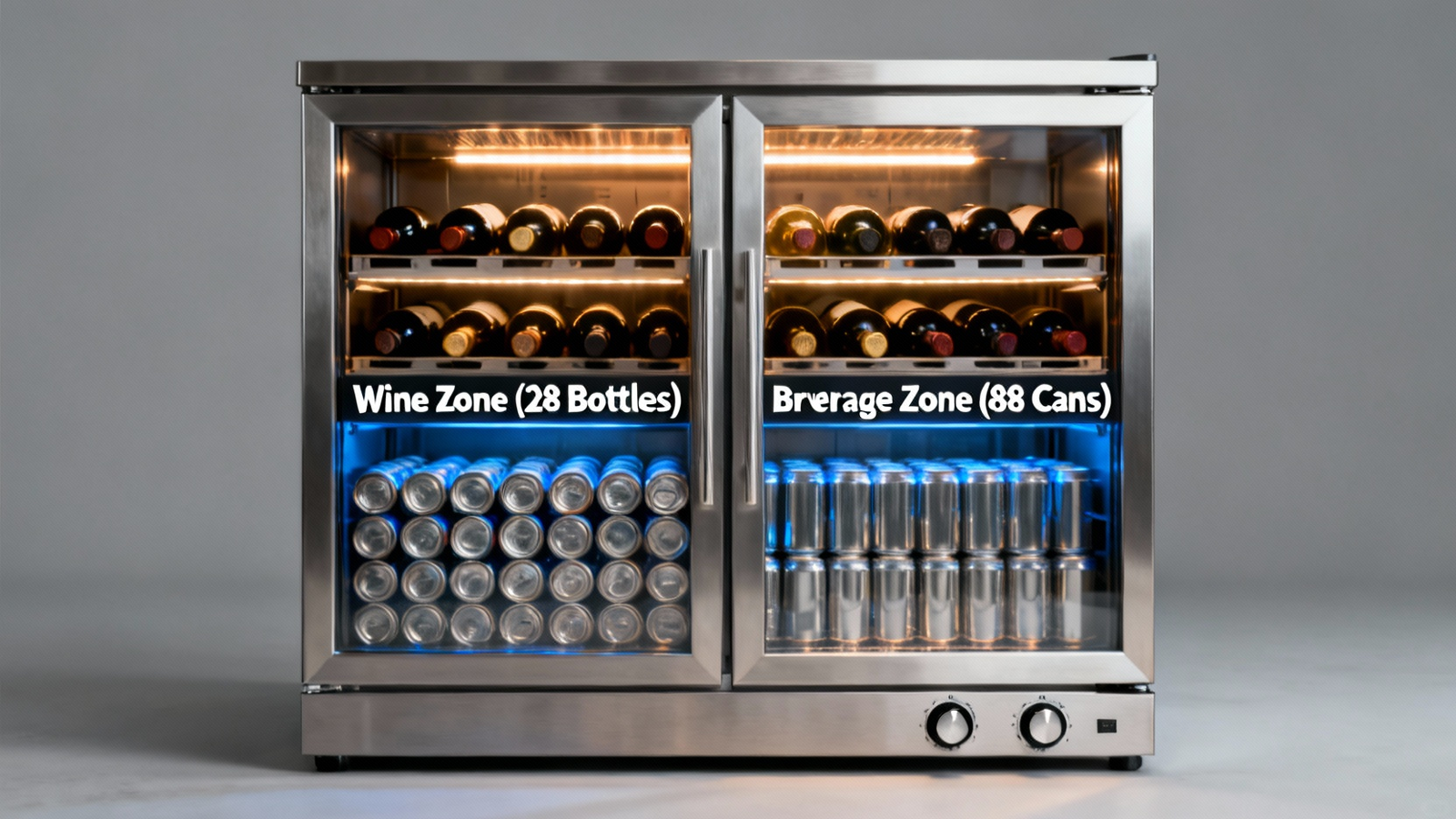 Dual Zone Wine & Beverage Fridge: 28 Bottles, 88 Cans