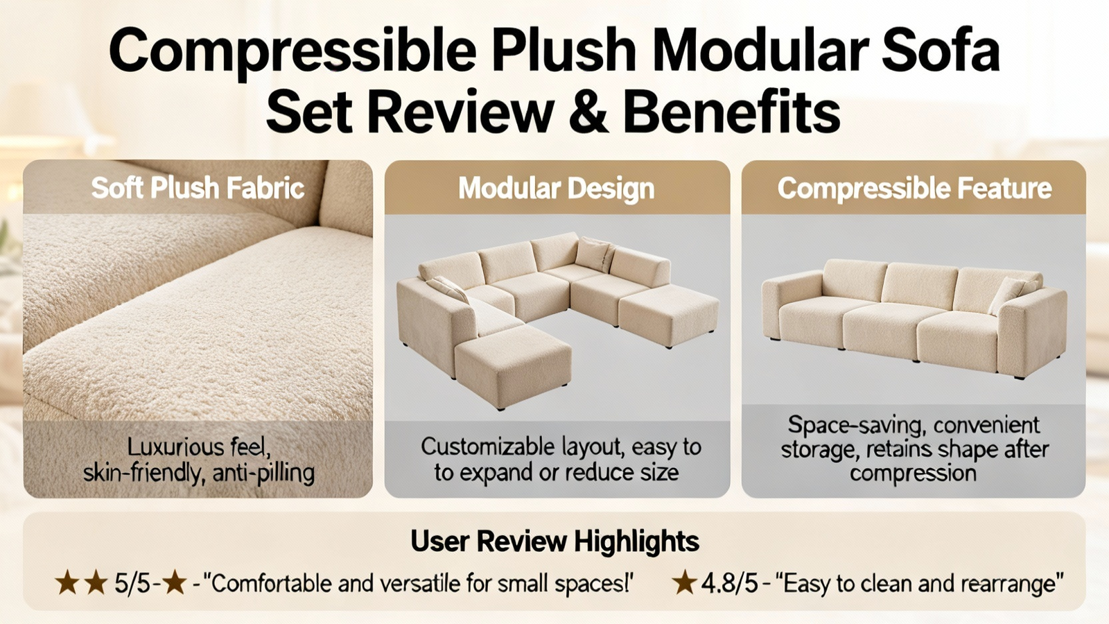Compressible Plush Modular Sofa Set for Modern Living