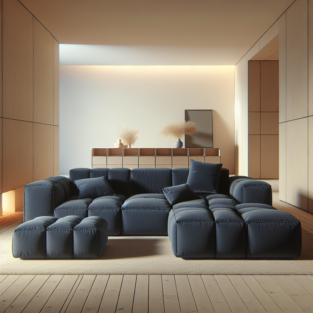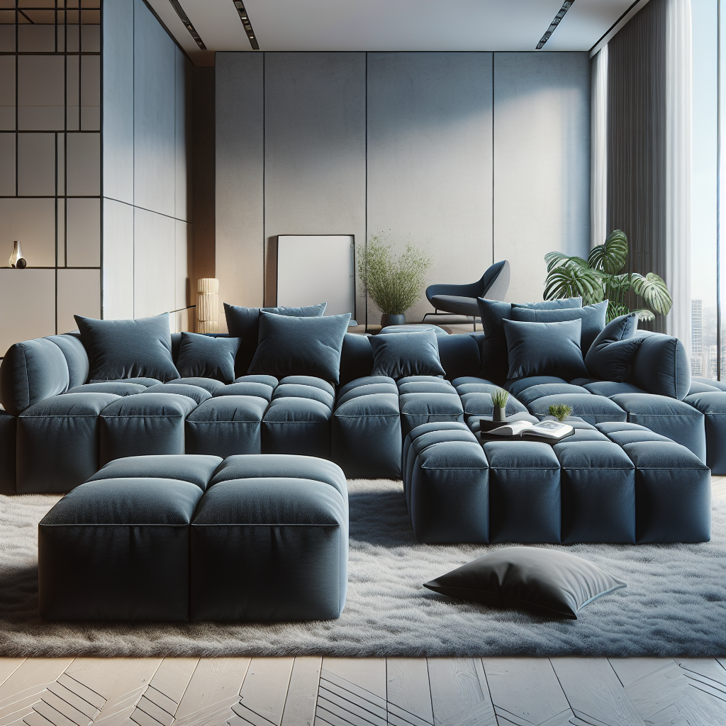 Compressible Plush Modular Lounge Sofa Navy Blue with Ottoman set features ergonomic design flexible layout and durable comfort for modern American homes