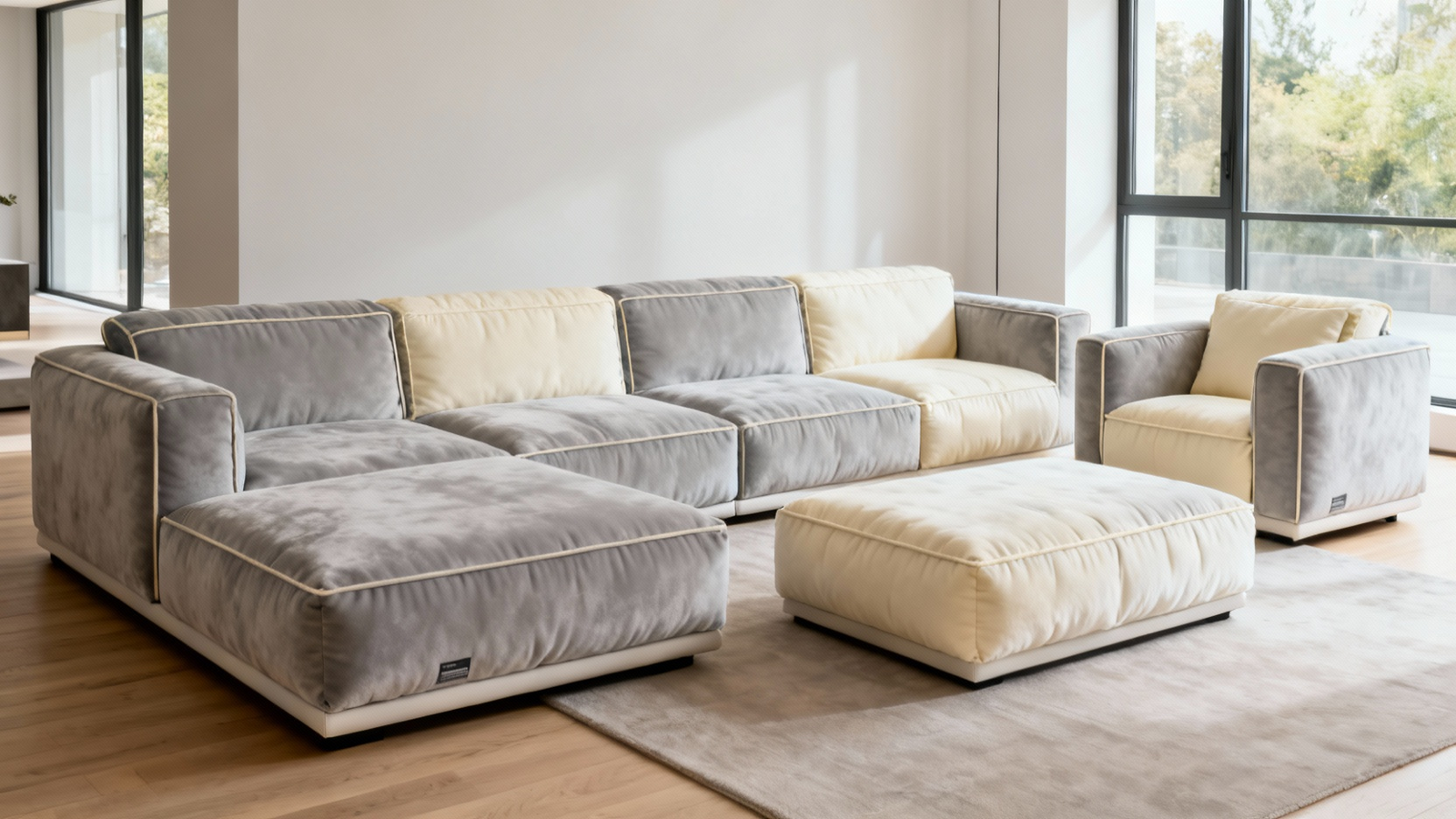 Compressible Plush Modular Sofa Set with Ottoman