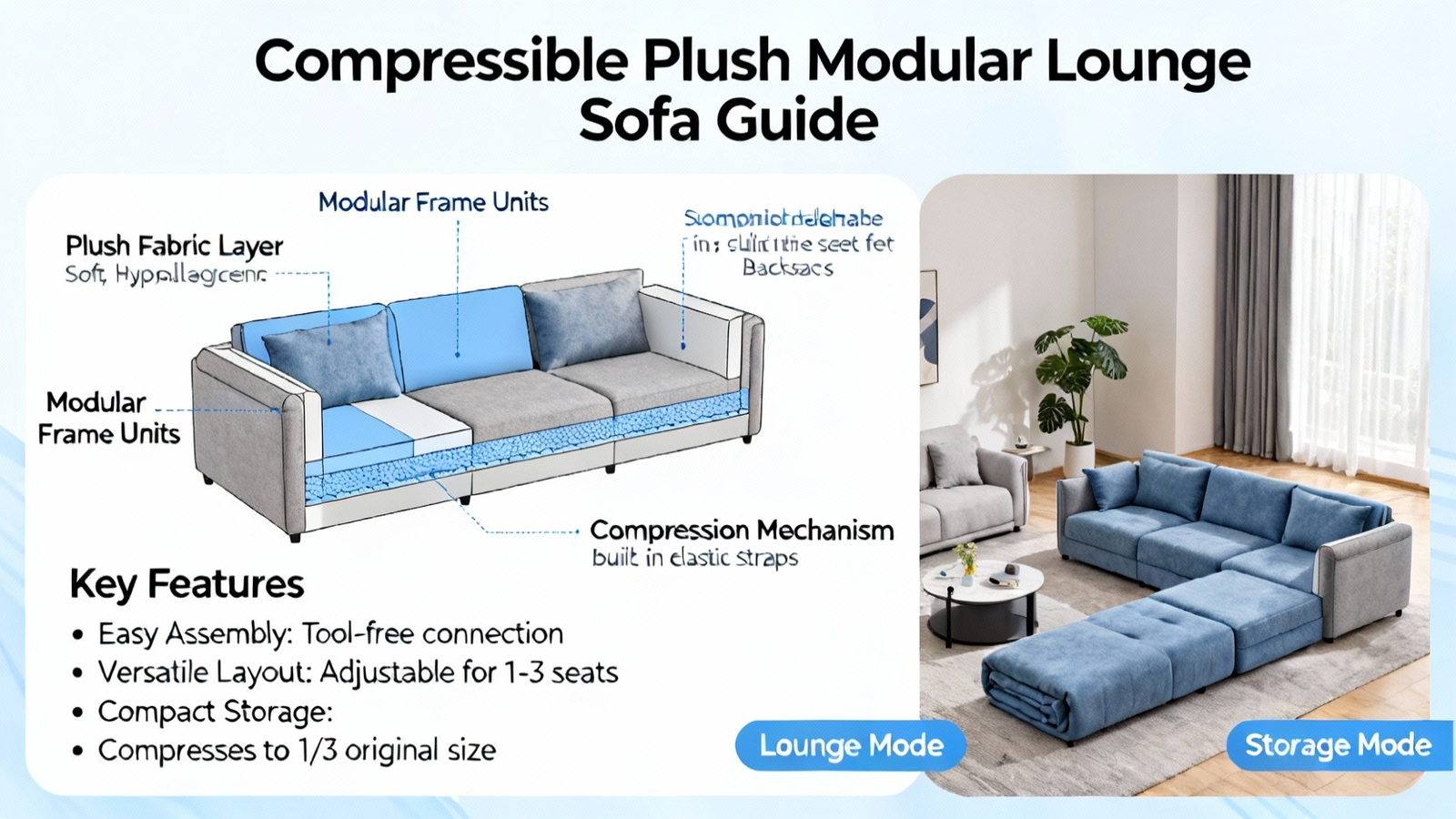 Modern Modular Lounge Sofa: Vacuum-Packed & Versatile