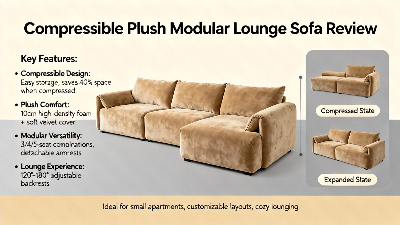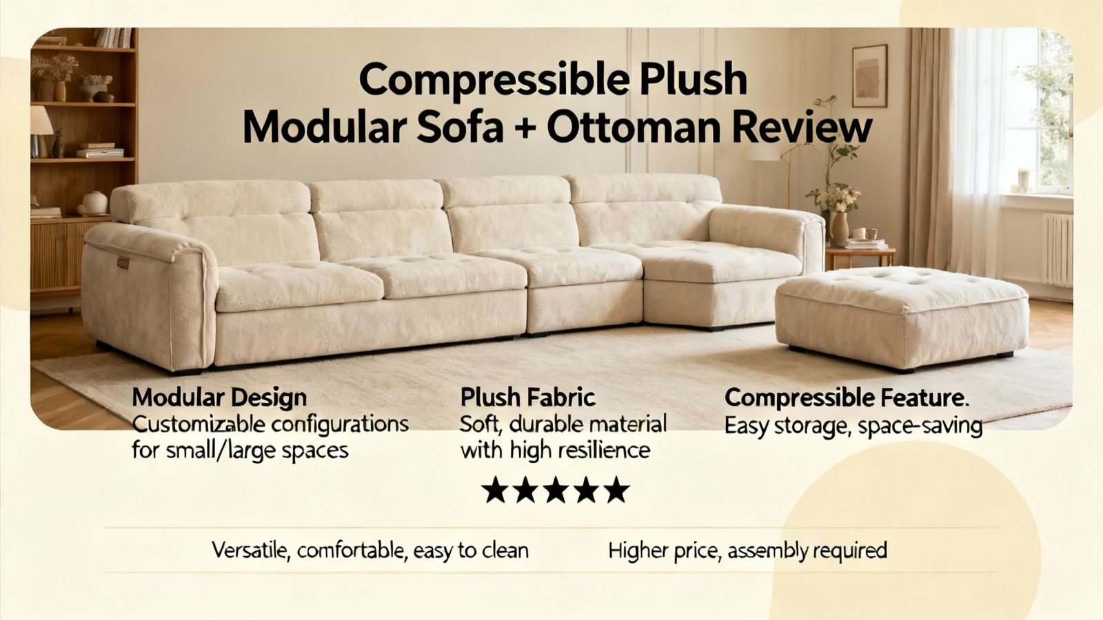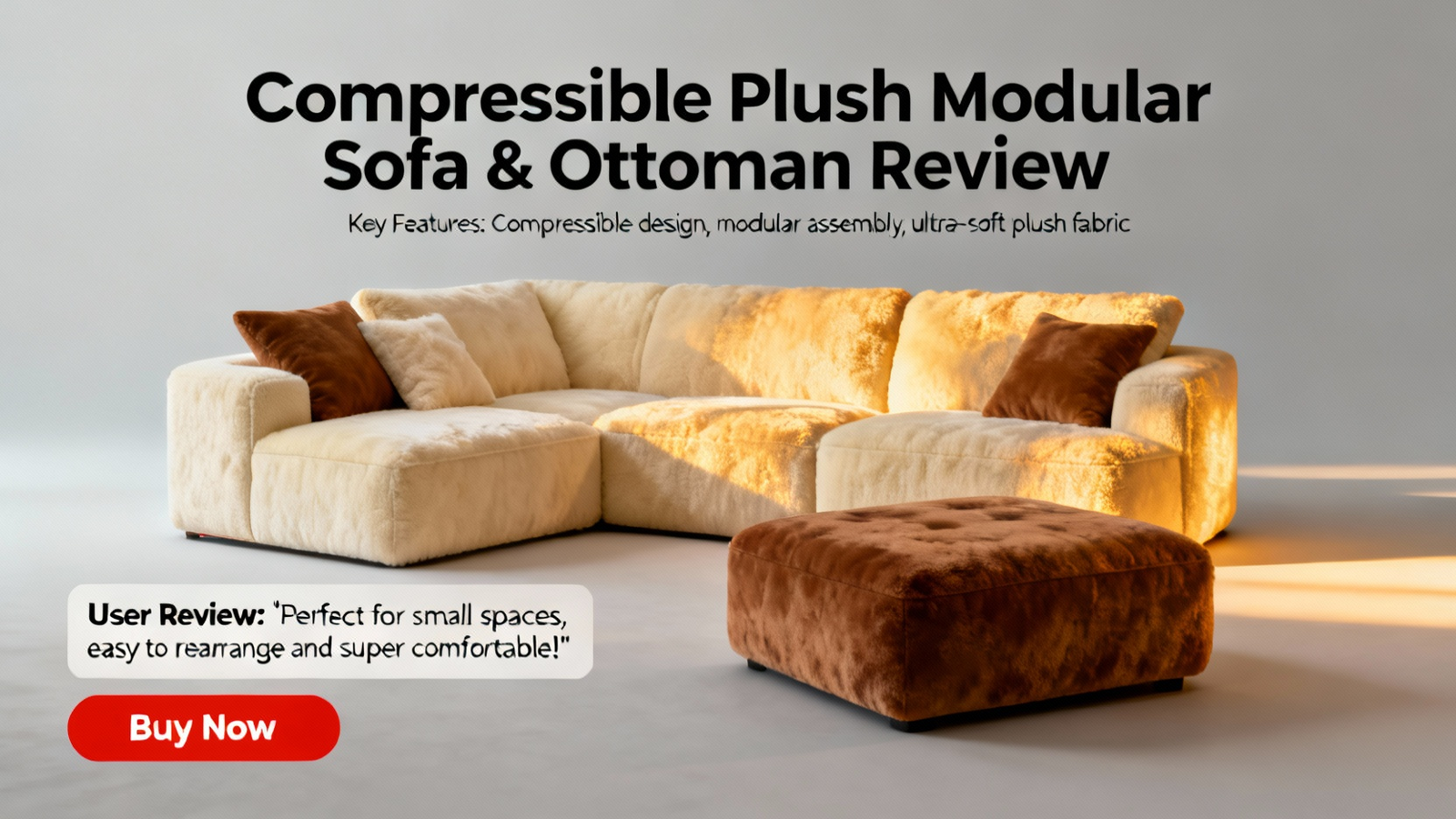 Compressible Plush Modular Lounge Sofa & Ottoman Set