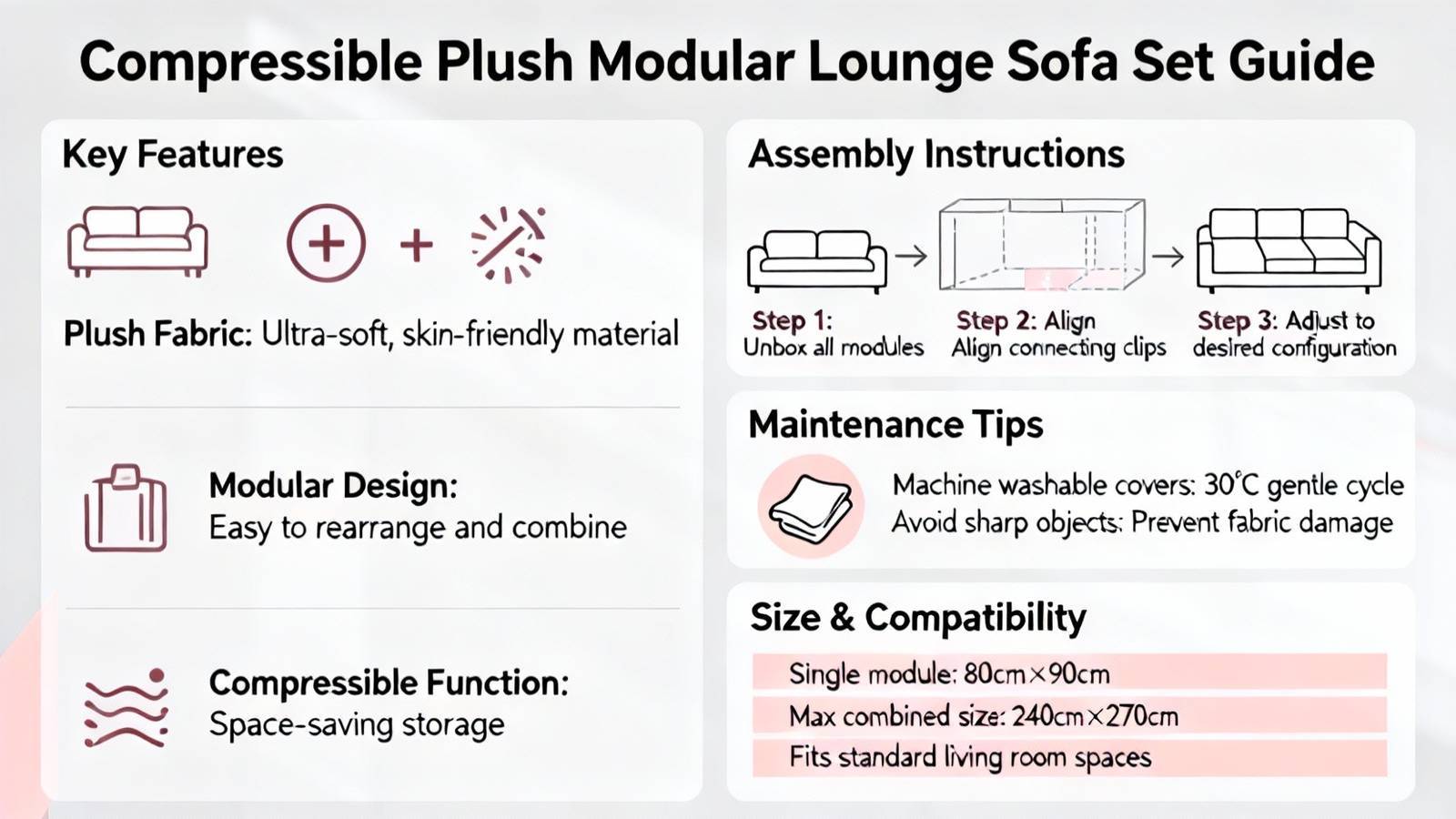 To summarize, the compressible plush modular lounge sofa set represents a thoughtful convergence of design innovation and practical necessity. We have traced its place within the broader trend of modular, space-saving furniture, a movement well-documented in design history and actively discussed in modern consumer communities. Its engineered dimensions and features, like the storage pocket and substantial weight capacity, are direct responses to real-world living needs. The vacuum-pack technology solves the significant logistical hurdle of delivering bulky items, though it necessitates a patient 48-hour decompression period for optimal performance. Finally, its material and form grant it exceptional versatility across various rooms and lifestyles. For those seeking a comfortable, functional, and adaptable seating solution that simplifies delivery and maximizes space, this modular sofa and ottoman set presents a compelling choice that aligns with both contemporary design principles and the pragmatic demands of modern living in the United States.