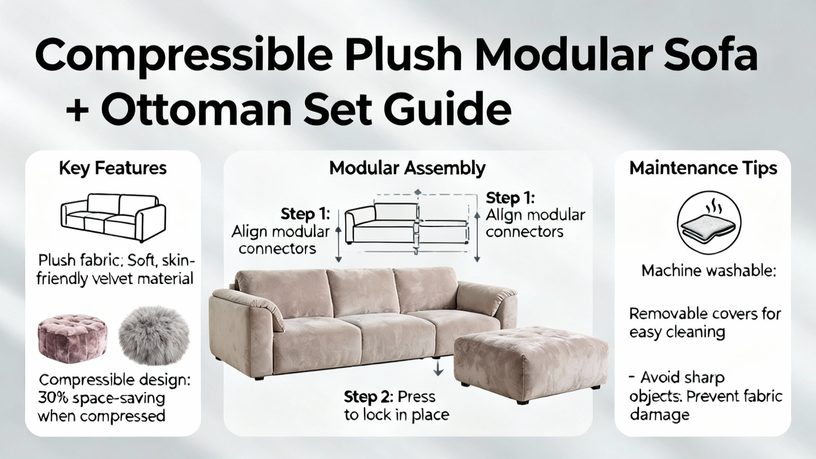 In summary, the Compressible Plush Modular Lounge Sofa + Ottoman Set represents a smart convergence of logistical innovation, thoughtful design, and practical living. From its space-efficient, vacuum-sealed arrival—a concept rooted in the flat-pack revolution—to its carefully considered dimensions and weight capacity backed by consumer insights from platforms like Reddit, this furniture piece is built for real-world use. The crucial decompression period is not a mere suggestion but a necessary step to ensure the materials achieve their promised comfort and longevity. Ultimately, this modular sofa set offers more than just seating; it provides adaptable, durable, and comfortable styling for the evolving needs of modern households across the United States. By understanding its features and following proper setup, you invest in a versatile centerpiece that will serve your home for years to come.