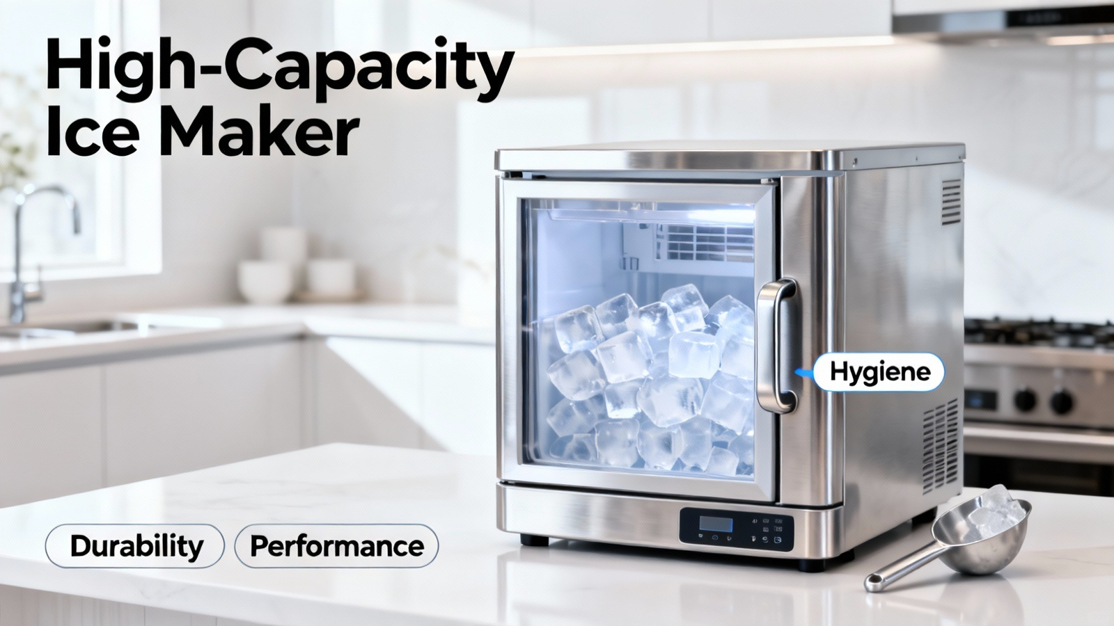 To summarize, a high-performance ice maker like the featured model addresses multiple needs through its substantial daily production and storage capacity, ensuring you are never without ice. Its intelligent design, underscored by an auto-clean function and smart controls, directly responds to documented health standards and user demand for low-maintenance appliances. The construction, centered on a reliable compressor and stainless steel housing, is built for longevity, a key factor for both homeowners and business operators seeking a return on investment.