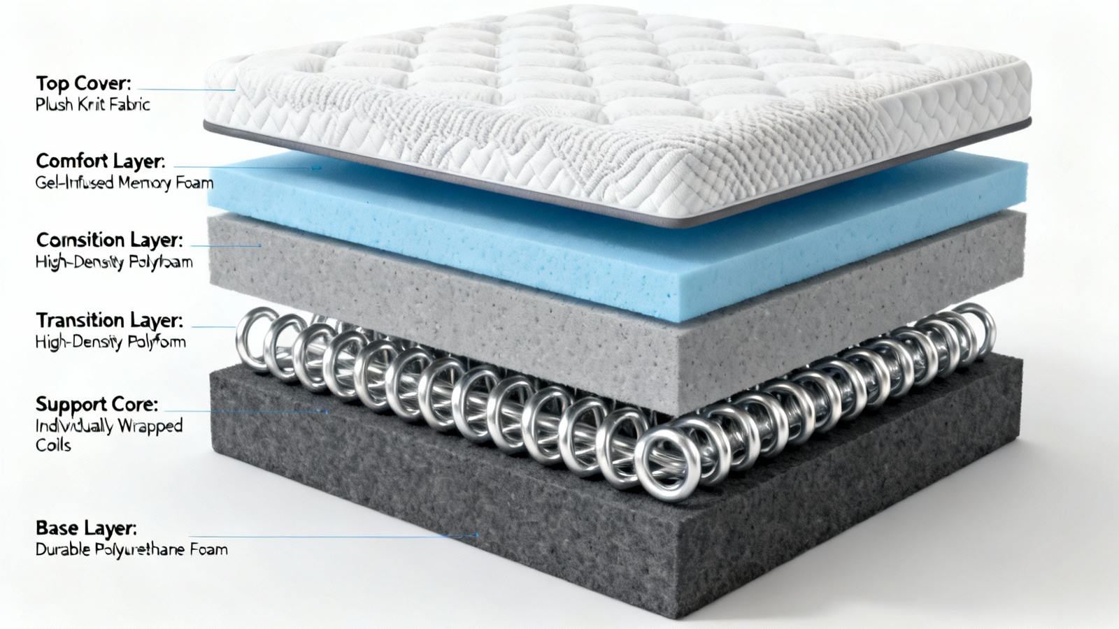Directly beneath the surface lies the comfort system. The inclusion of 1cm gel-infused memory foam is a targeted technology. Traditional memory foam is known for pressure relief but can retain heat. The gel infusion aims to mitigate this by dissipating body heat, a point frequently debated by users on forums like r/Mattress, where the effectiveness of various cooling technologies is a consistent topic. This layer works with the underlying 3cm high-density foam to provide initial cushioning and body contouring before engaging the deeper support core.