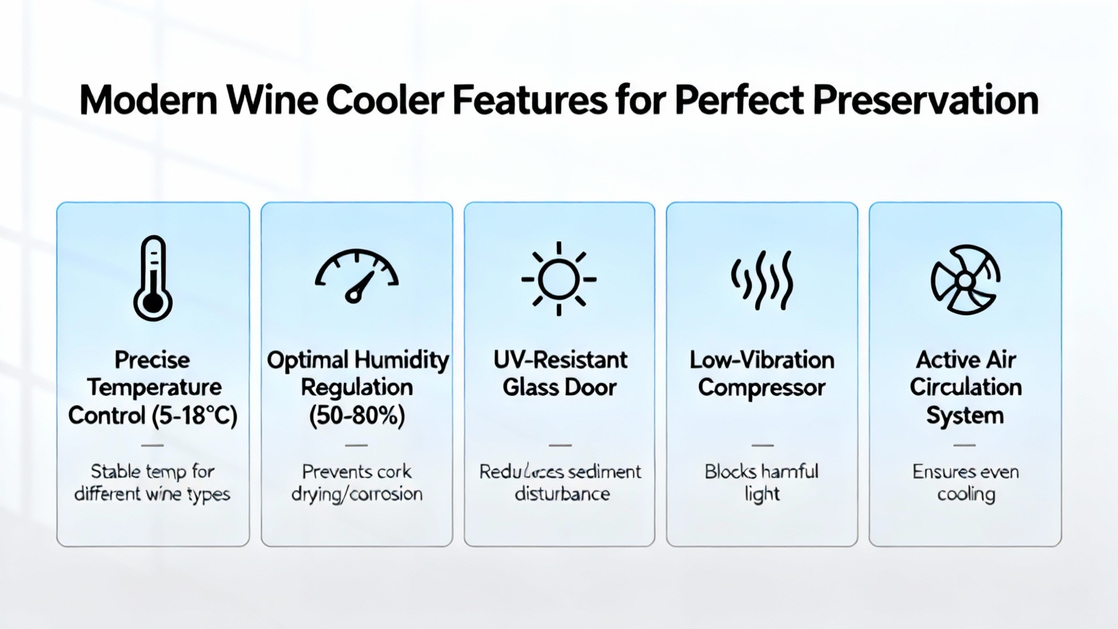Ultraviolet (UV) light is a well-documented enemy of wine, capable of degrading organic compounds and leading to premature aging or “light strike,” which produces unpleasant aromas. As noted on Wikipedia, this photochemical reaction is why many winemakers use colored glass bottles to act as a filter. A wine cooler with tinted glass doors provides a critical first line of defense, filtering out harmful rays while allowing for display. Furthermore, the ventilated front windows mentioned in the description aid in dissipating heat from the cooling system, preventing external heat buildup from compromising the internal climate—a common flaw in poorly designed units.
