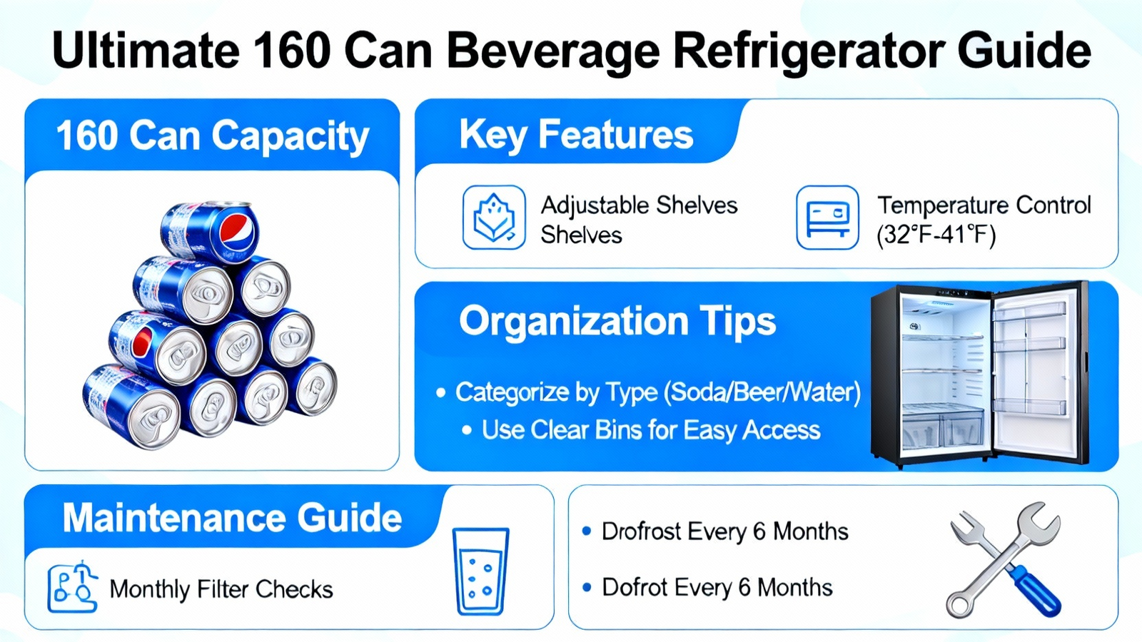 The core function of any beverage refrigerator is efficient, high-capacity storage. A unit holding up to 160 cans utilizes space strategically through adjustable shelving and modular components like additional baskets. This adaptability is crucial, as it accommodates a variety of container sizes—from standard soda cans and tall craft beer bottles to wine bottles and energy drinks. The design prioritizes visibility and access, ensuring every drink is within easy reach. This thoughtful organization eliminates the clutter of a standard kitchen refrigerator, creating a dedicated, systematic hub for beverages that streamlines hosting and daily use.